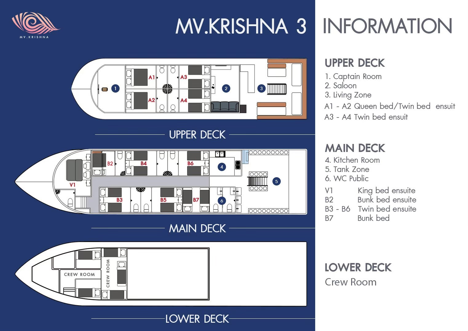 This cabin is on the main deck alongside the dive deck, this cabin features bunk beds, offering a sense of privacy, especially for solo travelers. The windows provide a clear and picturesque view, making your stay comfortable and enjoyable.