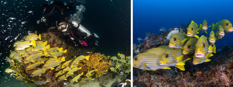 07:00 1st dive Divesite: WAYAG หนึ่งในจุดหมายปลายทางที่มีชื่อเสียงในเรื่องธรรมชาติและการดำน้ำ ไดฟ์ไซต์นี้จะมีฝูง Ribbon Sweetlips สีเหลืองอยู่กันเป็นจำนวนมาก