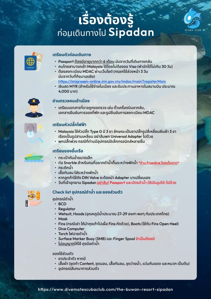 *สำหรับคนที่เช่าอุปกรณ์ไปที่ Dive Center เพื่อลองอุปกรณ์และตรวจเช็คก่อนได้เลย